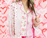 Pink Flower Print Long Sleeve Shirt Shorts Pajamas...
