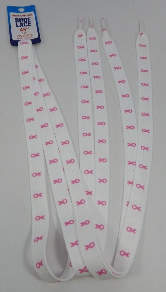 Pink Ribbon Cancer Awareness Fat Shoe Laces 45" in inches Skater White & Pink