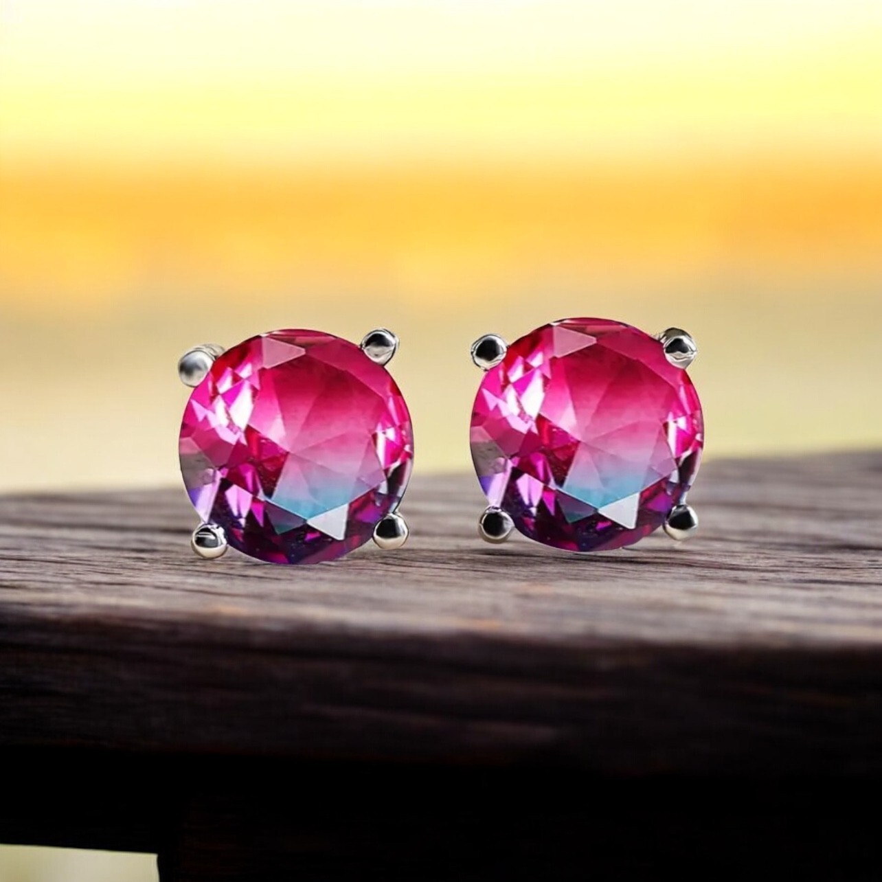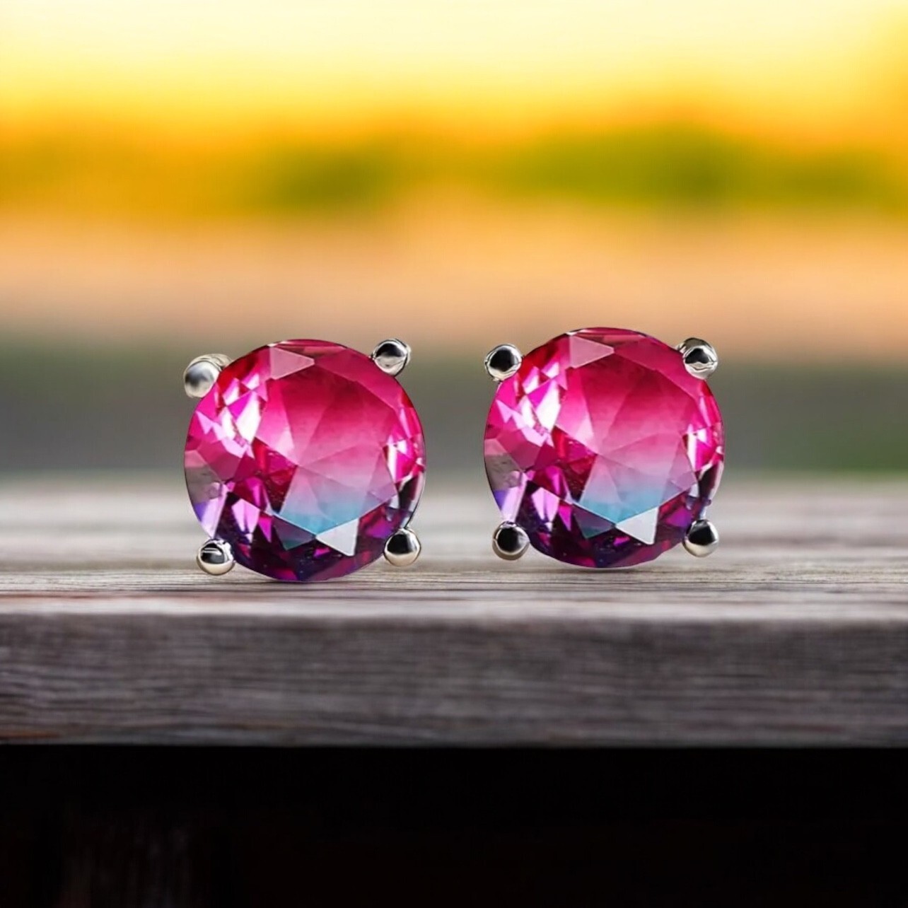 These earrings are perfect for any occasion, whether you're dressing up for a night out or adding a pop of color to your everyday outfit. The tourmaline has been heated and pressure treated for a beautiful and unique pink hue. These earrings are suitable for pierced ears and are 6mm in diameter.