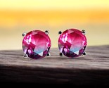 - Pink Tourmaline Earrings 925 Sterling Silver 6MM Stud Earrings for Women