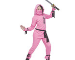 This unique kids Halloween costume will transform her into a cute warrior! It's a unique ninja costume perfect for trick-or-treating on Halloween night. Includes everything you need for a complete ninja outfit! Polyester.Includes:? Pink hooded shirt with dragon design? Pants? Face mask? Belt? Arm and leg bandsMade in the USA.