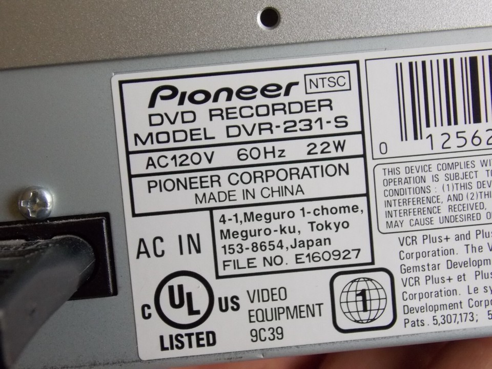 - Pioneer DVR-231-S DVD Home Pure Cinema Progressive Player Recorder (NO Remote)