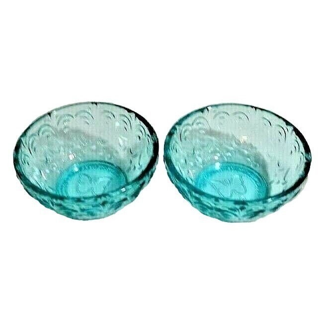 - Pioneer Woman 2 Teal Pressed Glass Dip Bowls 3.1 Inch Embossed Design Gift NEW