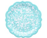 This 10.7-inch teal blue and white plate, made of durable melamine, flaunts a unique country-style splatter pattern. It's BPA-free for safe use.