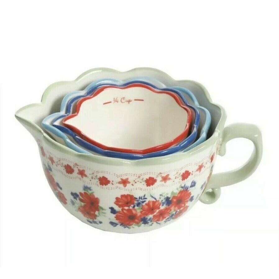 - Pioneer Woman Classic Charm 4pc Measuring Cups Floral Kitchen Stoneware Gift NEW