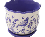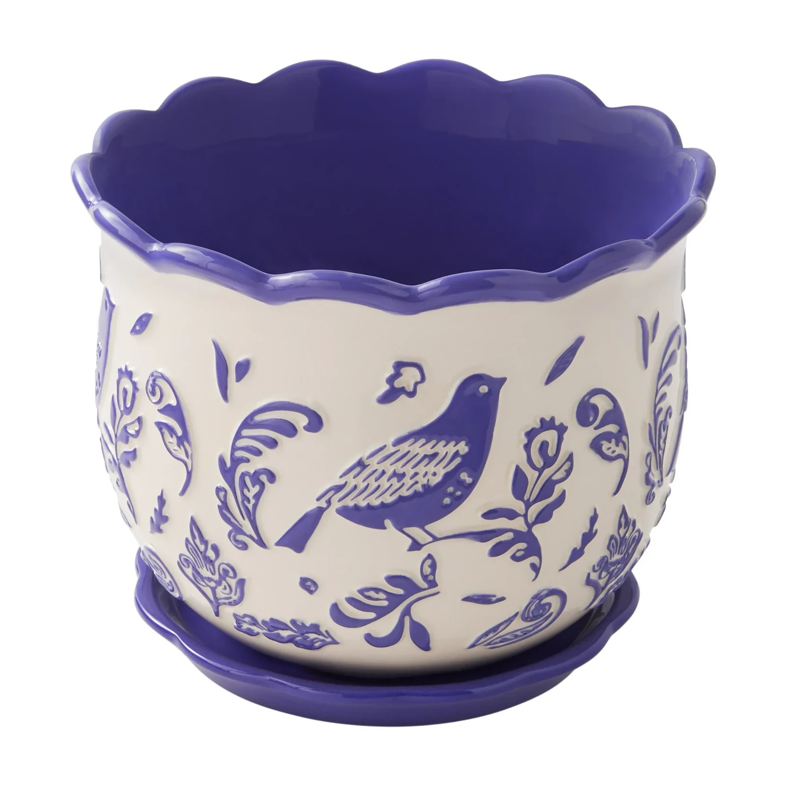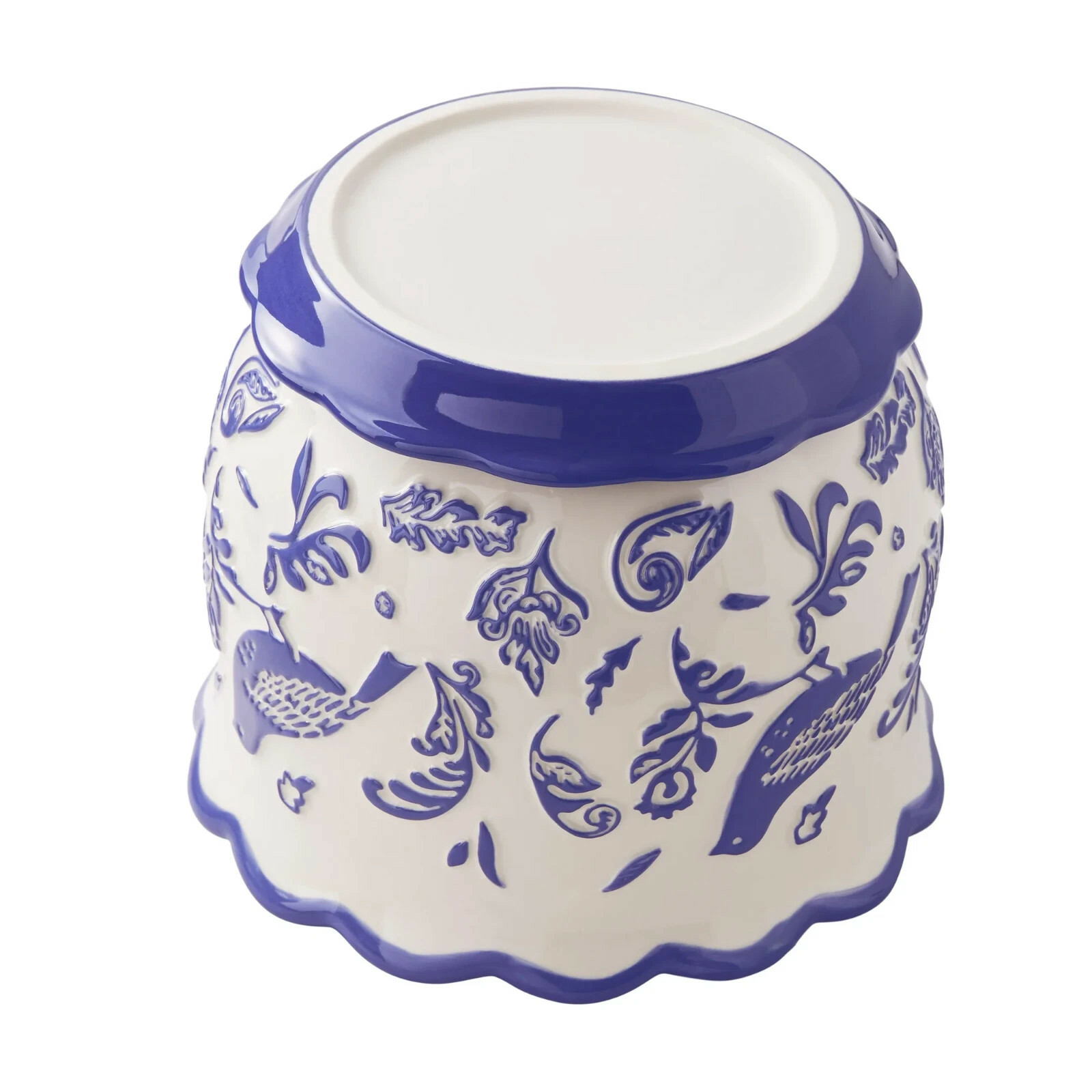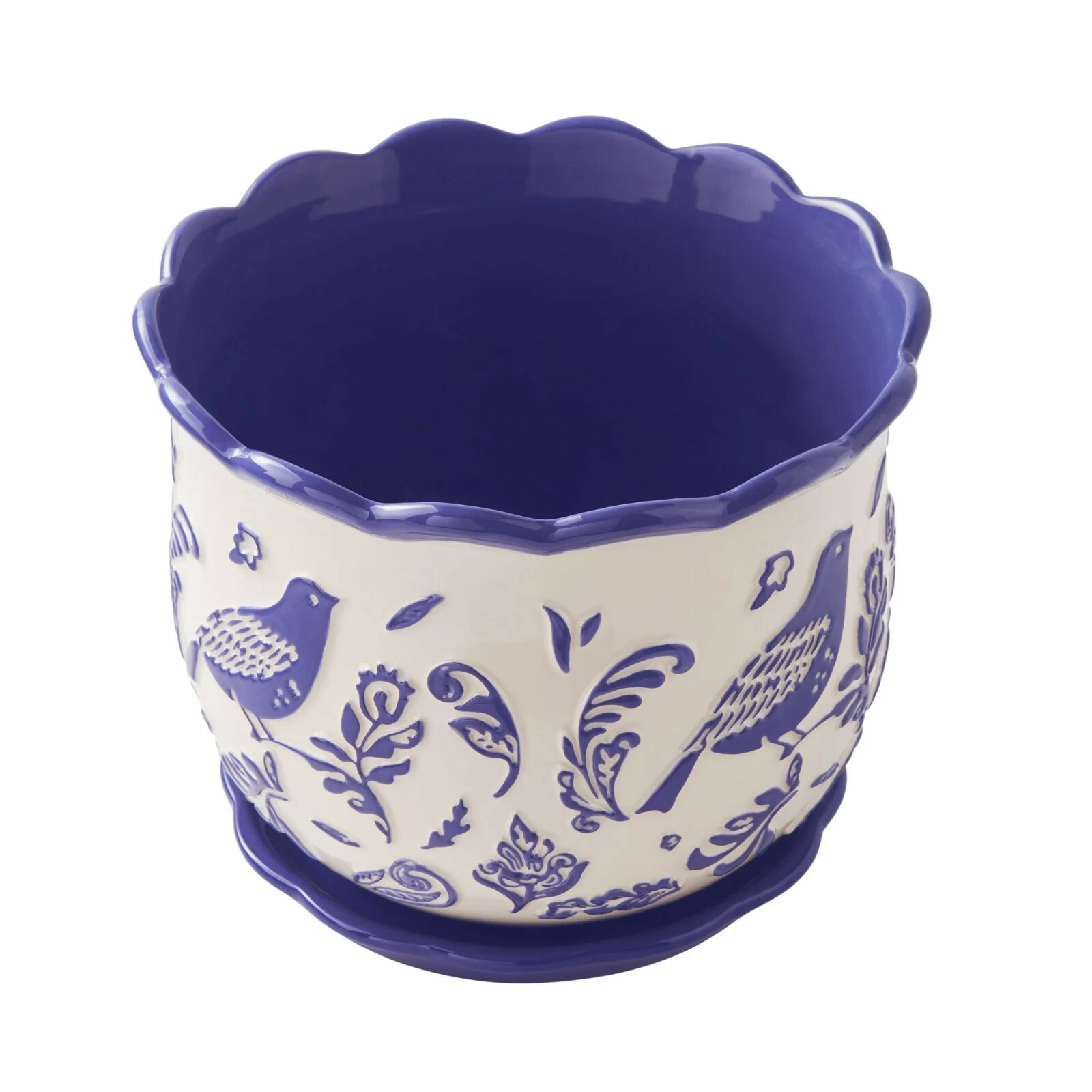 - Pioneer Woman Mazie Bird Ogee Embossed Ceramic Planter 8" Cobalt Blue White Gift