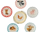 Pioneer Woman Novelty Gingham 6pc Plates 7-In Rack Pig Hat Chicken Cow Boots NEW