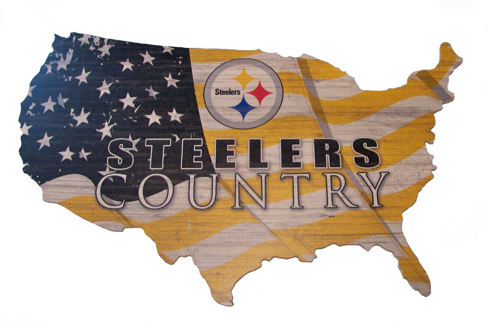 - Pittsburgh Steelers Country NFL USA Map Team Color Flag Wall Hanging Sign 18" L