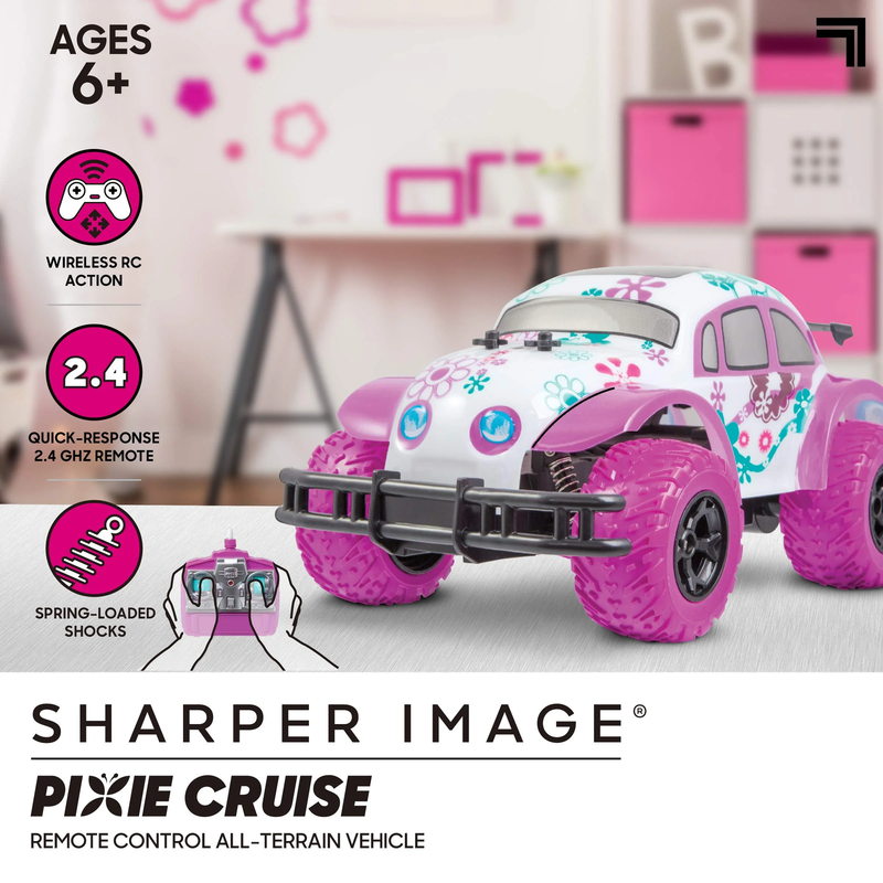 - Pixie Cruiser Pink and RC Remote Control Car, Pink & White Floral