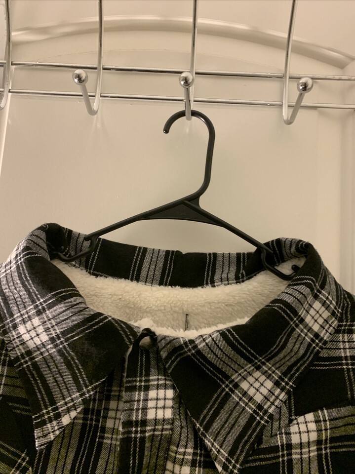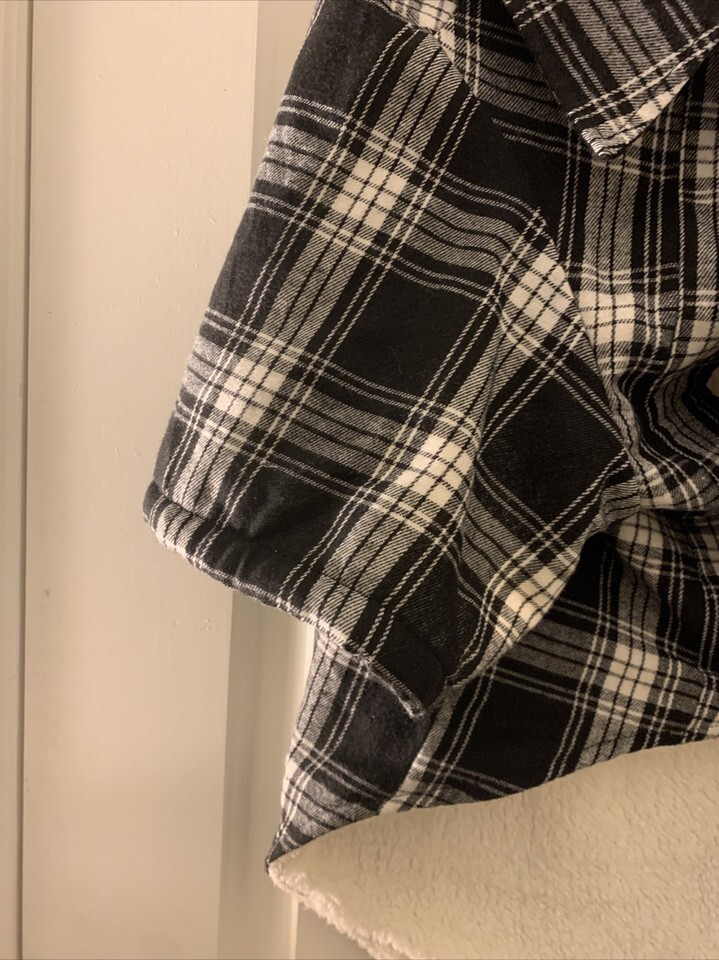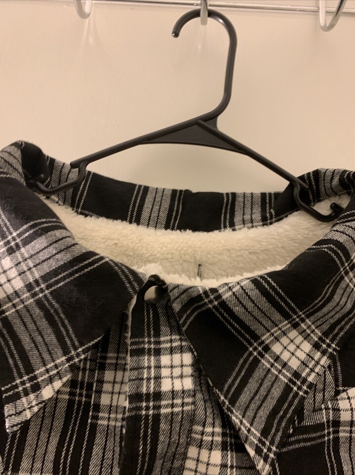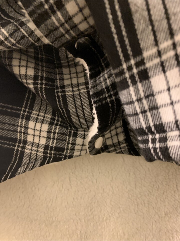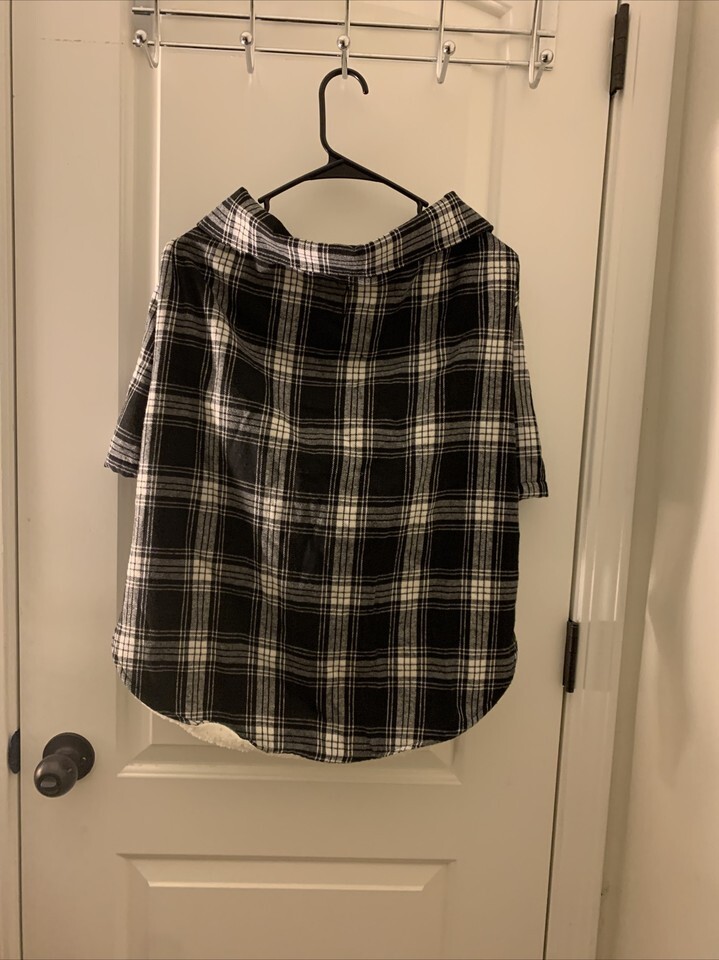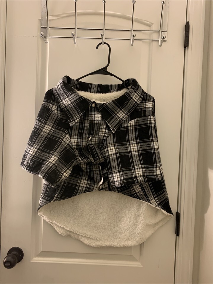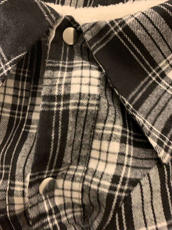 Flannel Plaid Dog Coat with Sherpa Lining Snap Front Size 2XL Pet Black White Size 2XL in excellent like new condition.