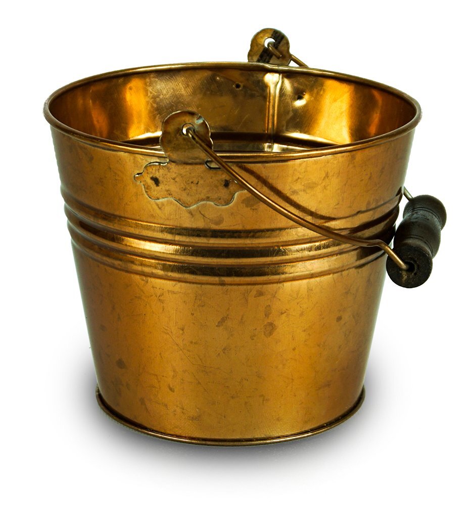 Product description: Vintage Banded 6-Inch Bucket Planter - New Penny. The Vintage Banded 6-Bucket Planter - New Penny by Robert Allen has a great retro look and a real wood handle. This planter can not only be used for your favorite plants, but it will also look great on a shelf in a craft room or holding utensils on the kitchen counter. The versatility of this planter will quickly make it a much-loved addition to your collection. Planted with a houseplant, it would make a great gift for a friend.