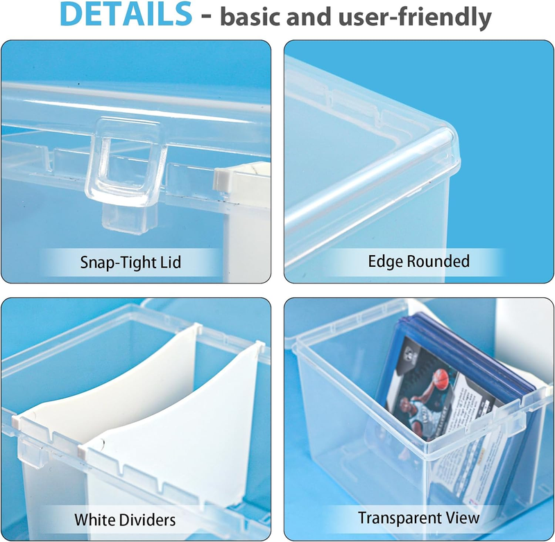 Plastic Trading Cards Storage Boxes with Dividers: each box comes with 2 white dividers that you can better sort and organize the massive cards. Divide different themes card such as football cards, baseball cards, game cards etc.
