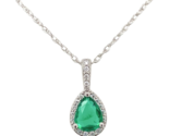 - Platinum .46ct Pear Shape Genuine Natural Emerald Diamond Halo Pendant (#J7388)