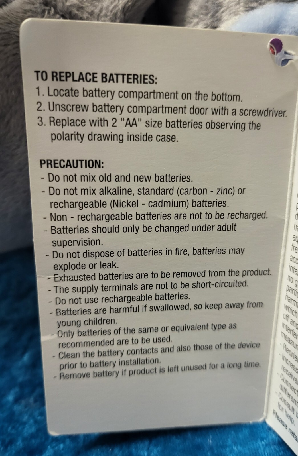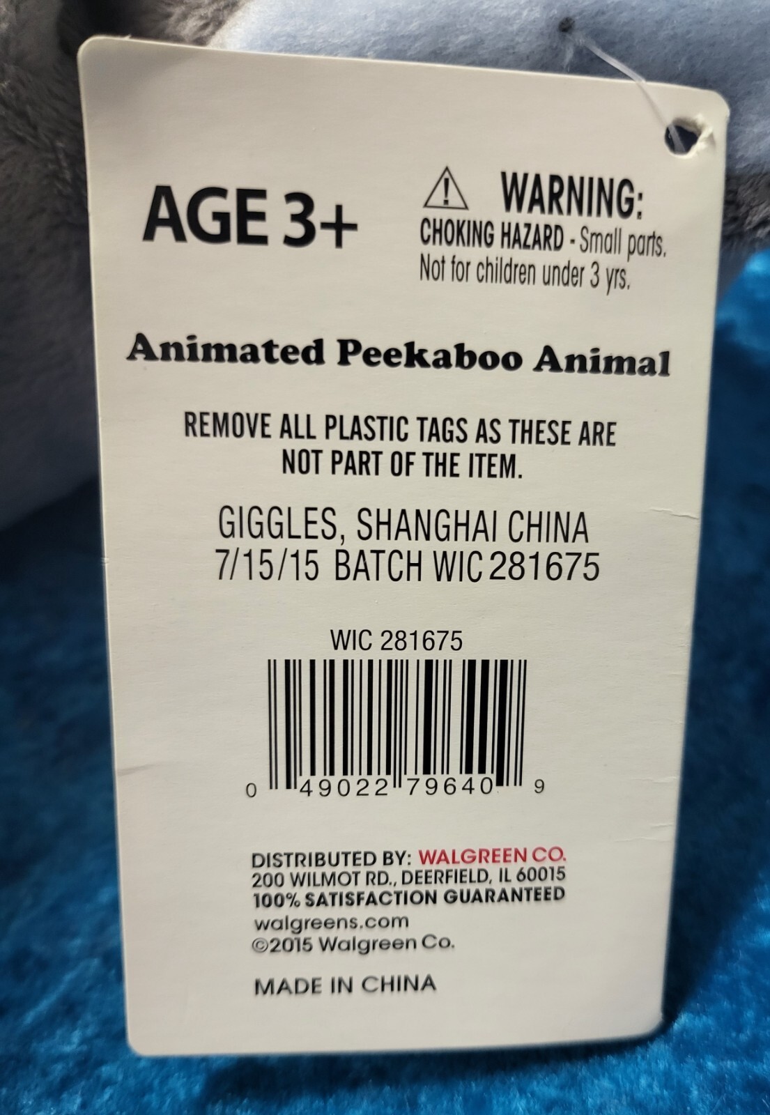 The Play Right Animated PeekaBoo Plush Elephant is a charming toy designed to entertain and engage babies aged 3 and up. With its interactive features, including moving arms and giggling sounds, this gray elephant plush is sure to provide hours of fun. The Peek-A-Boo brand and elephant theme add an element of novelty to this approx. 8-inch toy, making it a delightful addition to any baby's playtime. Made in China, this unisex plush is a perfect companion for little ones to explore and play with. This item is from 2015 and was produced for Walgreens. Please review all photos as they are a true and accurate depiction of the item. Tested 6/24/2025 and performs as seen in the Video.