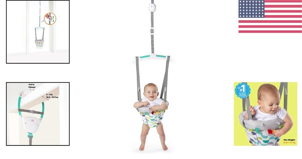 - Playful Parade Door Jumper: Adjustable Fun for Babies 6 Months+, Max 26 lbs