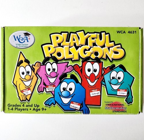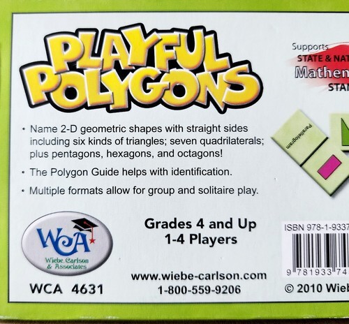 Great condition with less than typical wear for its age and use. Game style polygon play with domino flat tiles. Supports State and National Mathematics Standards