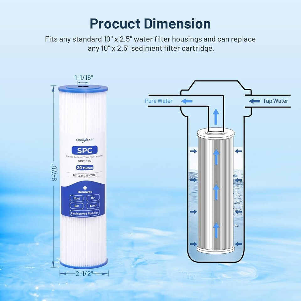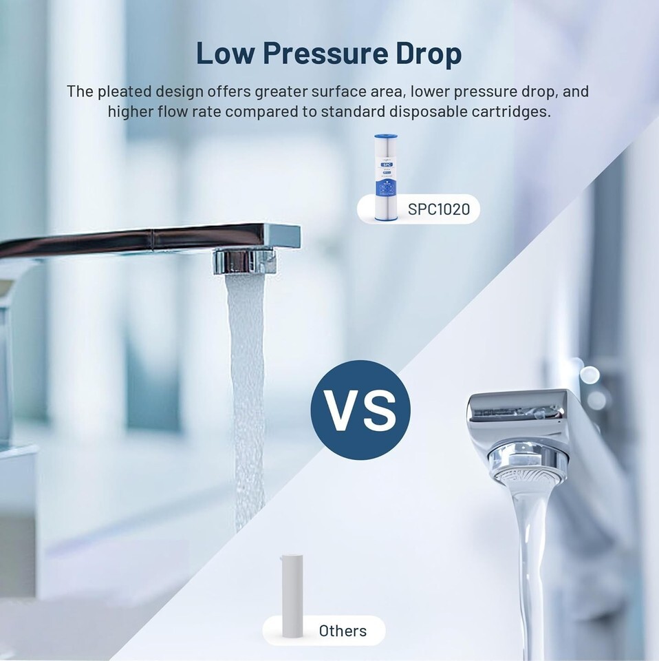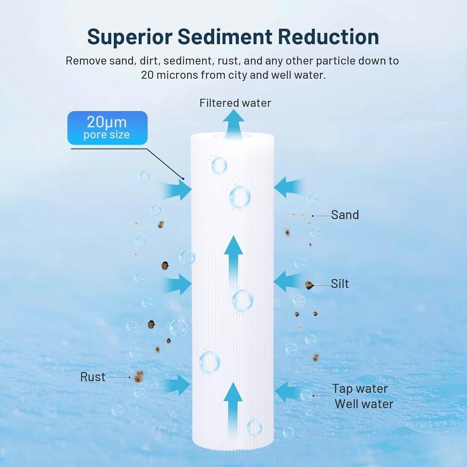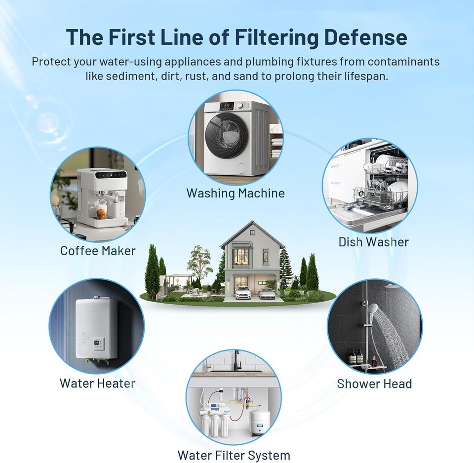Versatility: Ideal for filtering both city and well water, effectively reducing sediment, dirt, scale, and rust particles down to 20 microns.