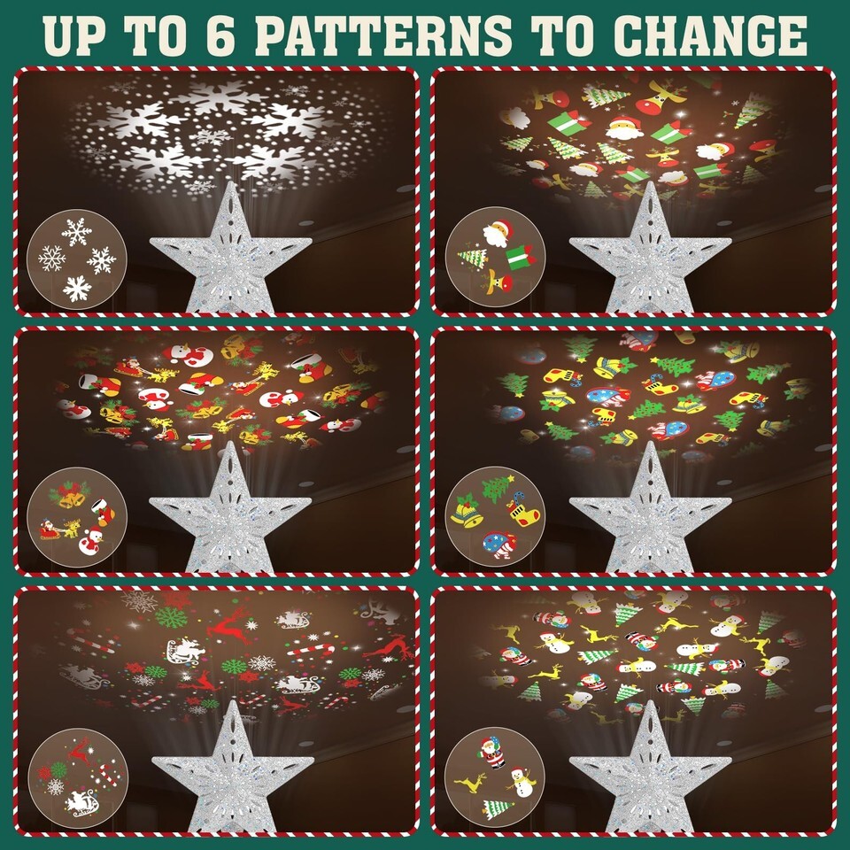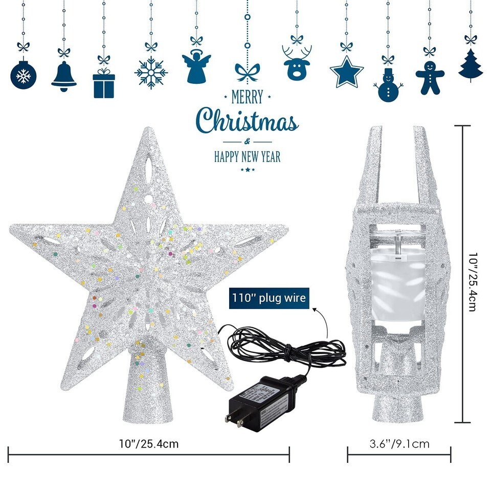 360 Rotatable Projector Light: The Christmas tree topper lighted star built-in projector light rotates 360automatically without noise, projecting high-definition patterns. The LED projector lamp inside the star could adjustable projection angle to ensure optimal projection.