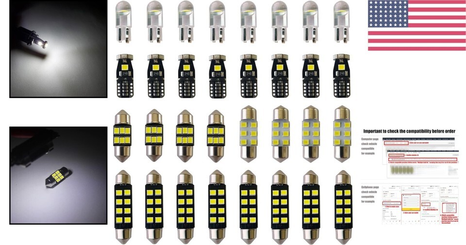 Plug Play 32-Piece LED Replacement Kit for Dome, Map, License Plate Lights