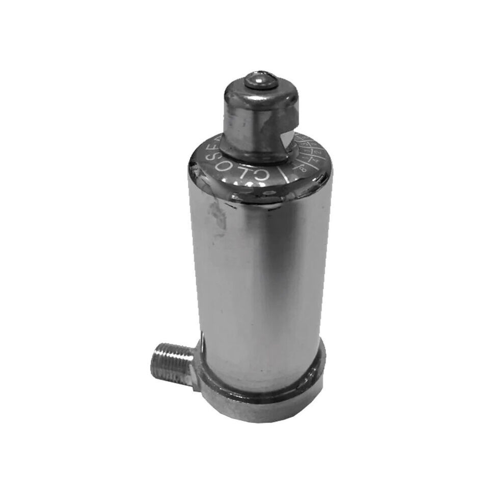 The Plumbers Edge 1/8 in. IPS Angled Vent Valve is a modern, silver valve designed for steam radiators. Made by Plumbers Edge in 2019, this valve is compliant with Energy Star standards and has a noise level of 3. With a depth of 2 inches and a height of 4 inches, this valve is an essential part for most radiators and is suitable for various heating and cooling systems. Its central heating parts and accessories include male angled components, making it a reliable choice for home improvement projects related to heating, cooling, and air systems.