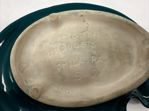 - PLYMOUTH POTTERY ASH TRAY Green ASH TRAY PHILA PA
