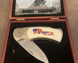 Primary image for Pocket Knife Collectable American Flag USA & Marine Corp Monument w/ Wooden Case