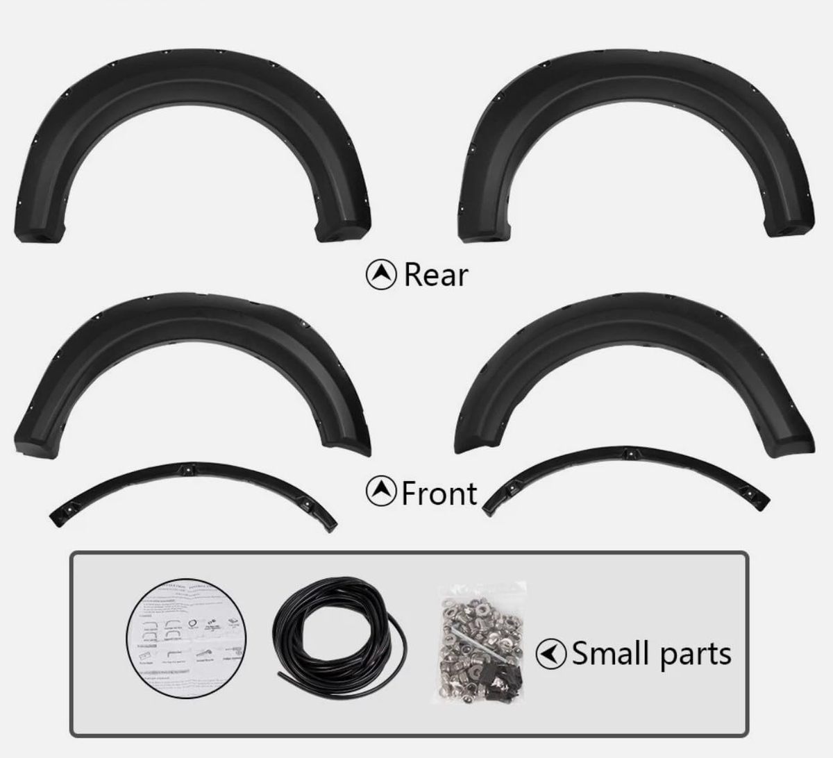 Product description: Brand new in box Comes with 6 pieces of fender flares. (2 x front, 2 x front inner pieces 2 x rear) Made of high quality polypropylene with paintable smooth finish Protects wheel from mud, scratches, sand and other outer damage Upgrade your vehicle with a refreshing look