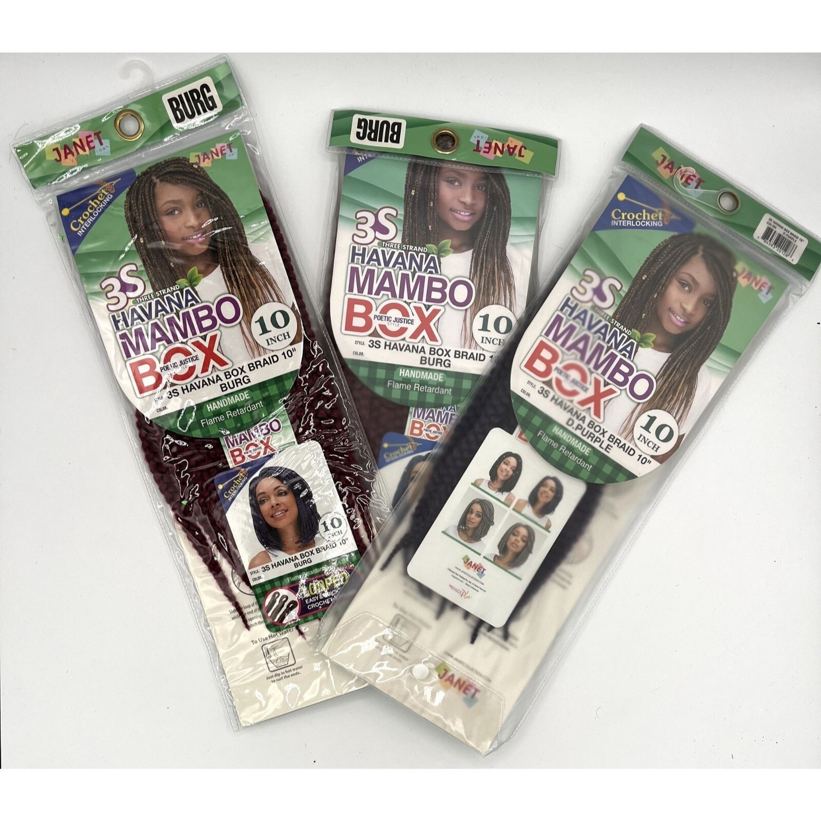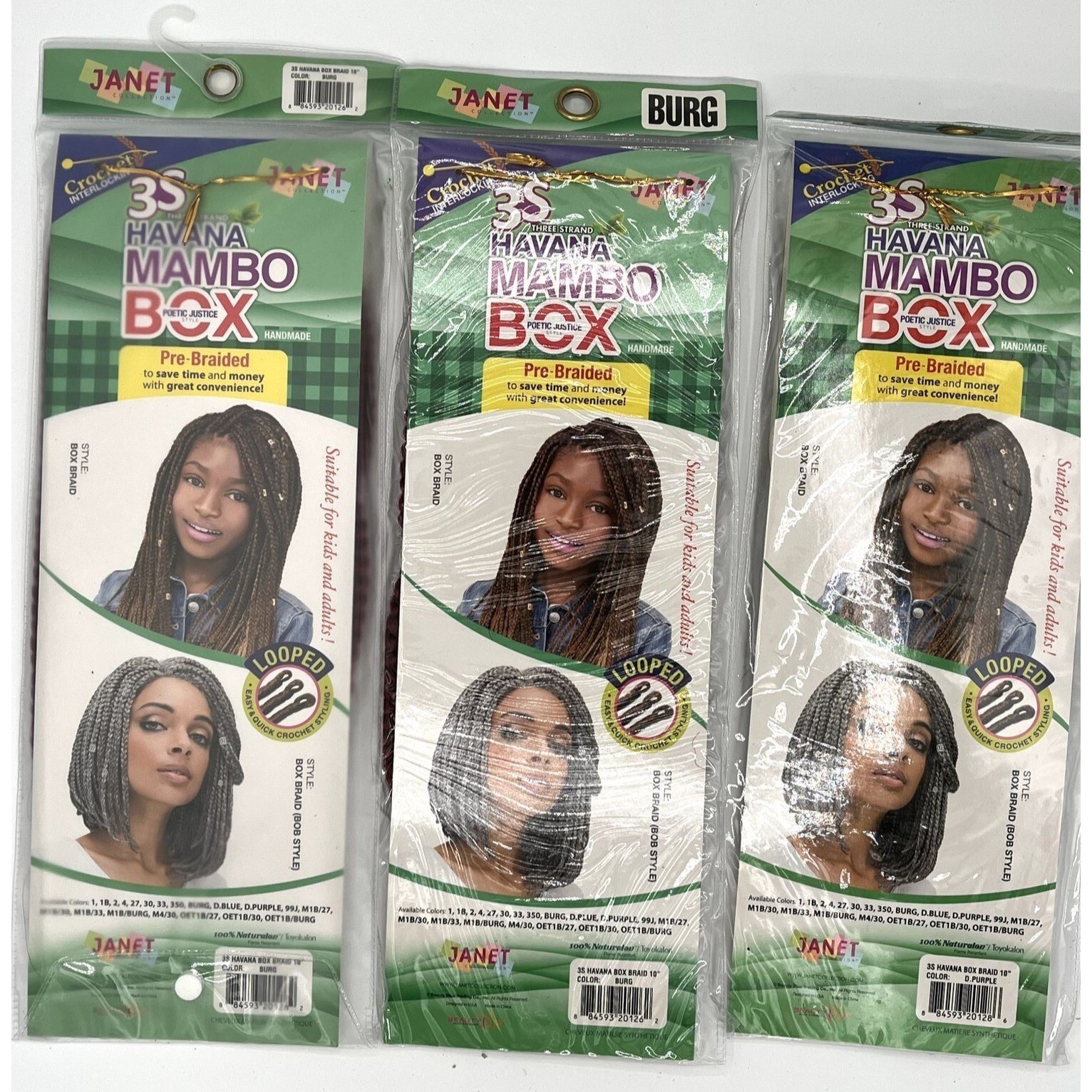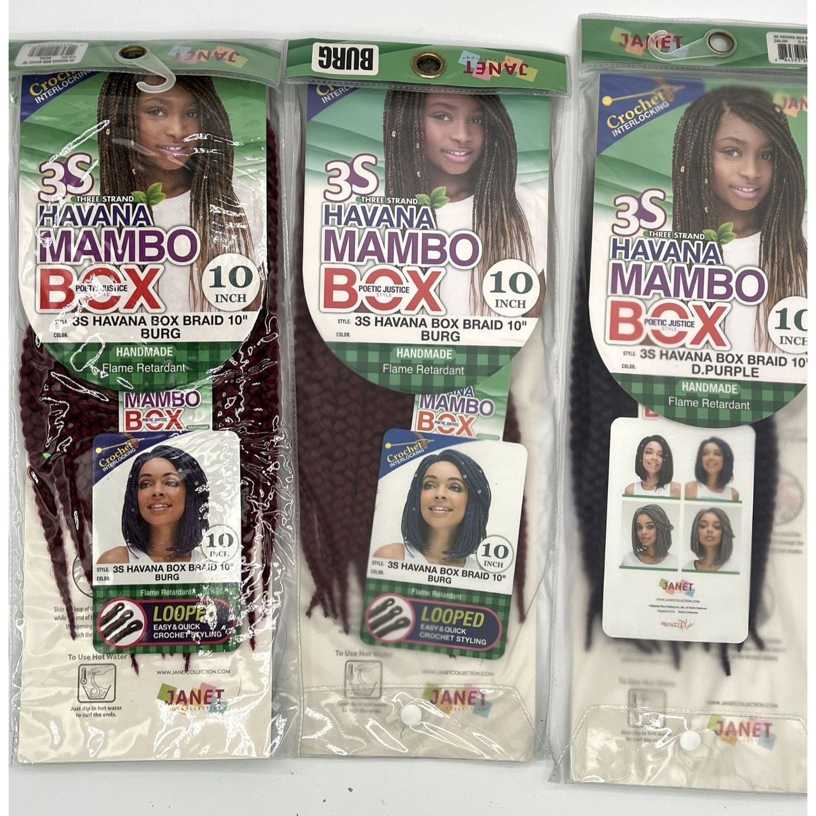 Poetic Justice Janet Collection Havana Mambo Box Braid 10" Janet Collection. 3 pack. 2pcs of Burgundy, 1 pc Dark Purple. New. Buy with confidence. Check out our reviews. Also, happy to combine shipping to save you when you buy multiple items.