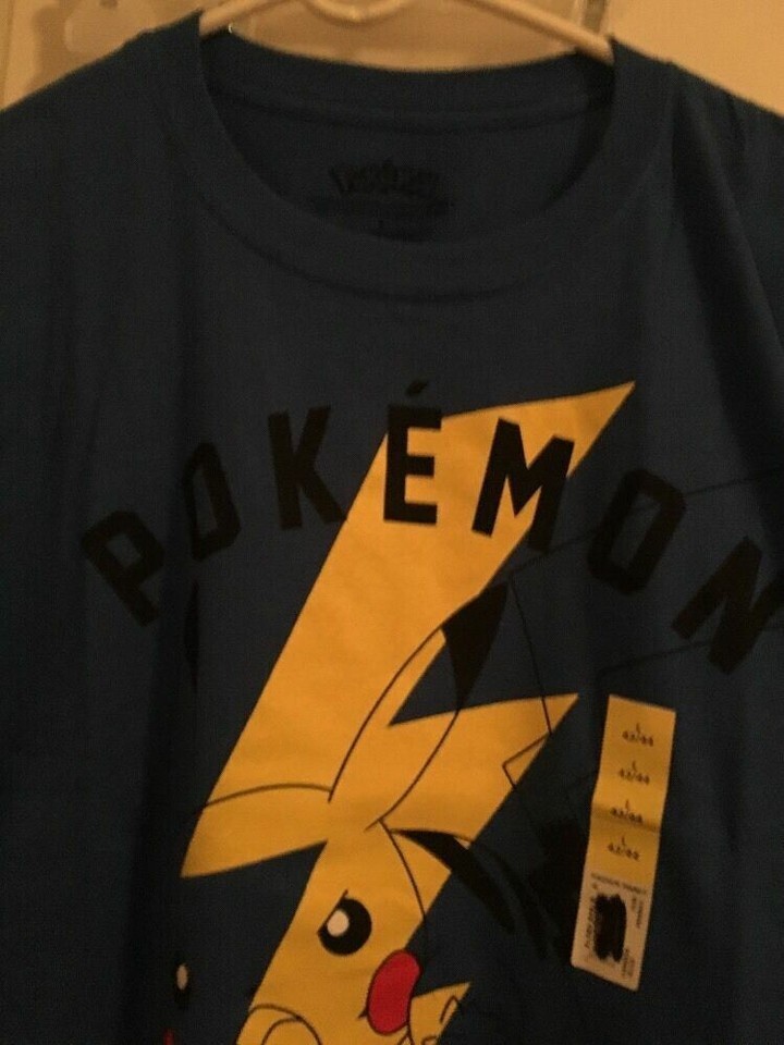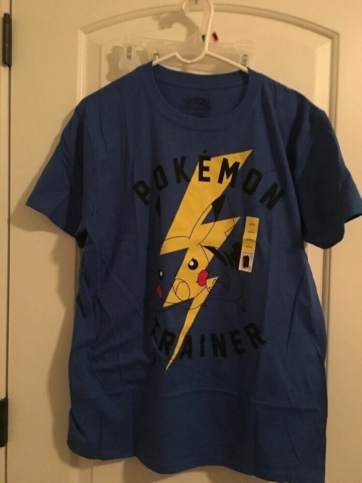 POKEMON TRAINER Pickachu Adult Unisex Tee Graphic Print Shirt Size L 42/44 Shirt Top Blue NWT. NEW.
