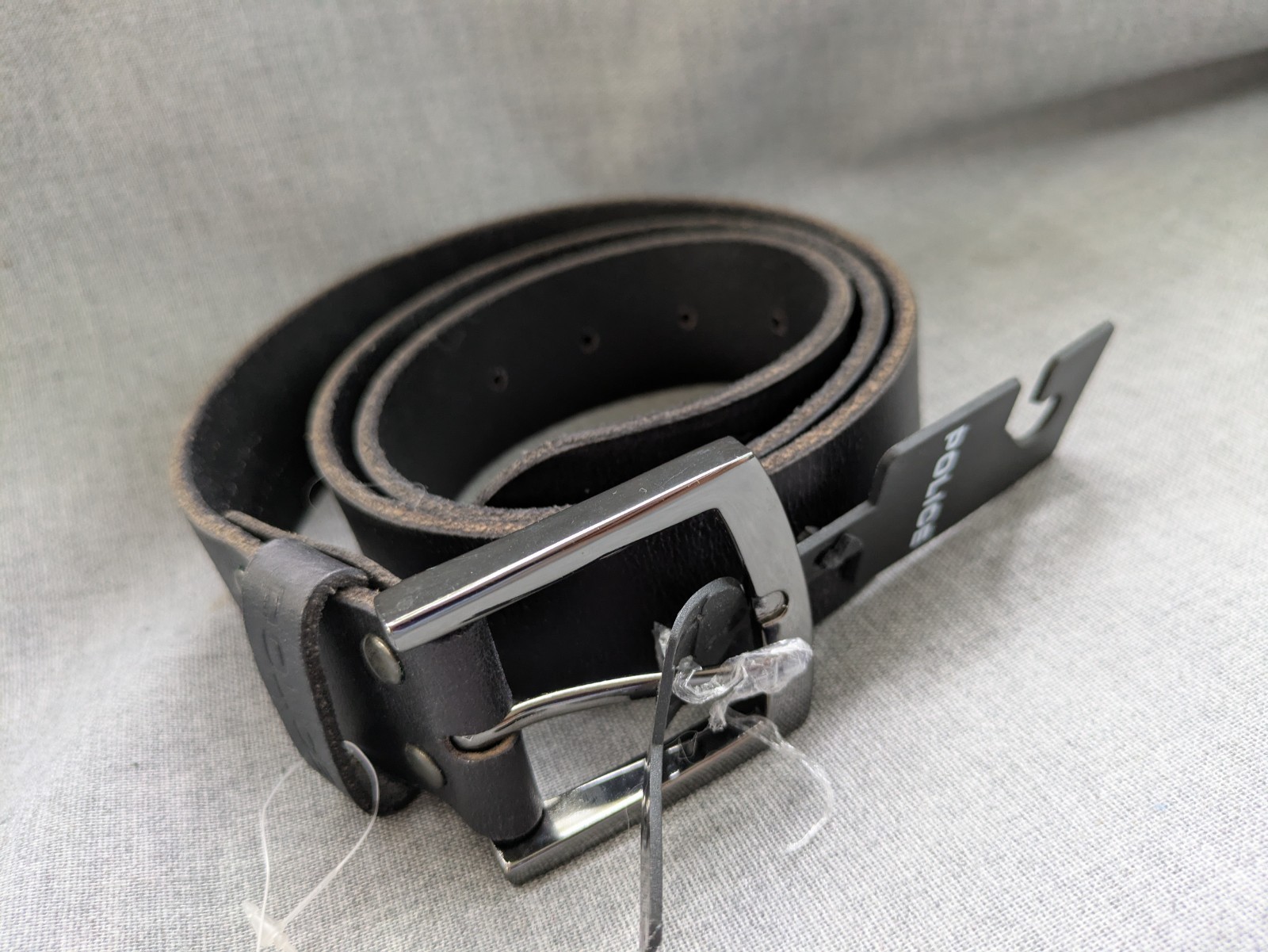 This police genuine black leather belt with a silver buckle is a stylish and versatile accessory for both men and women. The adjustable belt features a solid black color with a 1.5-inch width and is made of high-quality leather. The brass hardware adds a touch of sophistication to the design, making it perfect for a variety of outfits and occasions. This new belt from Bella Renelli is a timeless piece with a 90s and Air Force theme, ideal for those looking to add a touch of edgy chic to their wardrobe.