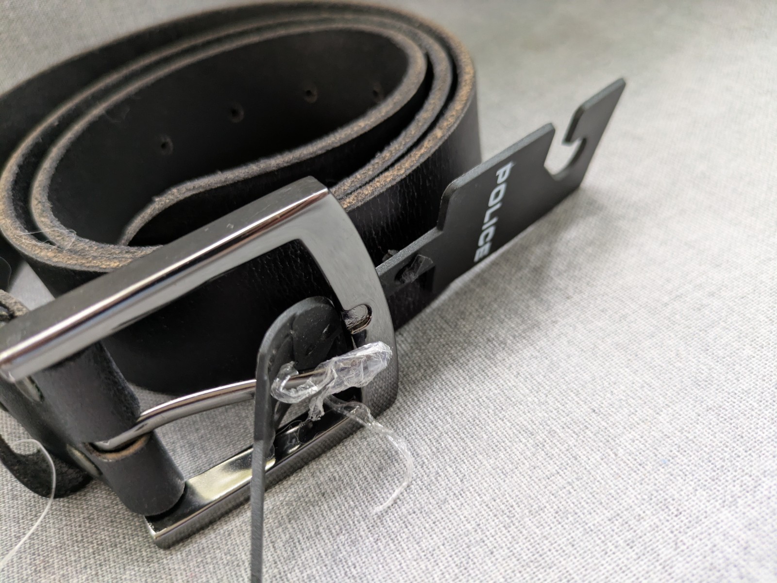 - Police Genuine Black Leather Belt Silver Buckle Unisex 35-39 Inch NEW