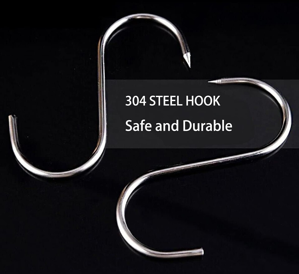 Polished 4-Inch Meat Hooks - Heavy-Duty S-Shaped Hook Set for Grilling & Drying