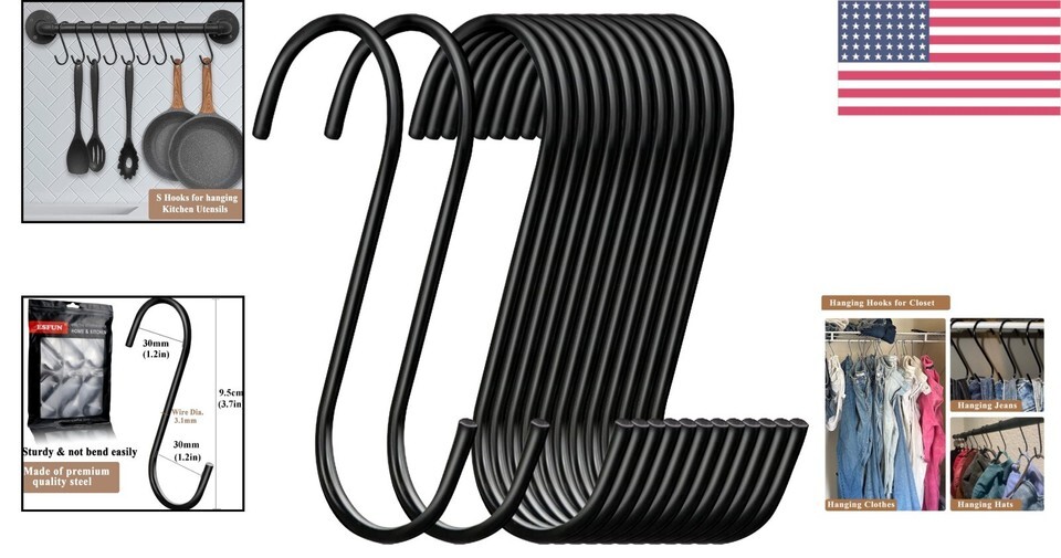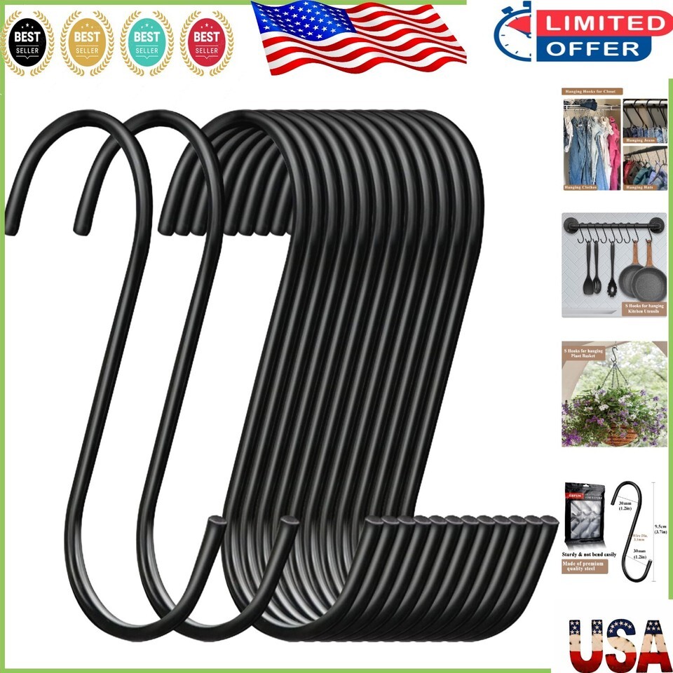 Polished Black Steel S Hooks (30 Pack) - Maximize Kitchen Garage Organization