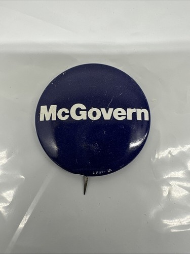 - POLITICAL CAMPAIGN PINBACK MCGOVERN BLUE WHITE 1.5” 1972 ELECTION