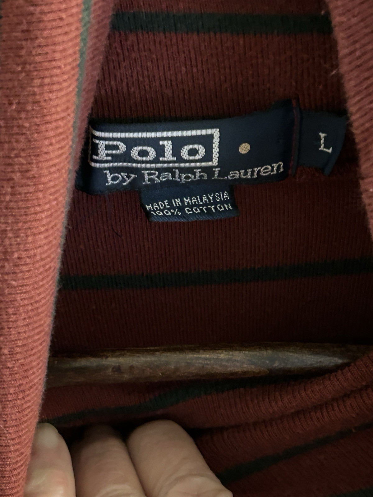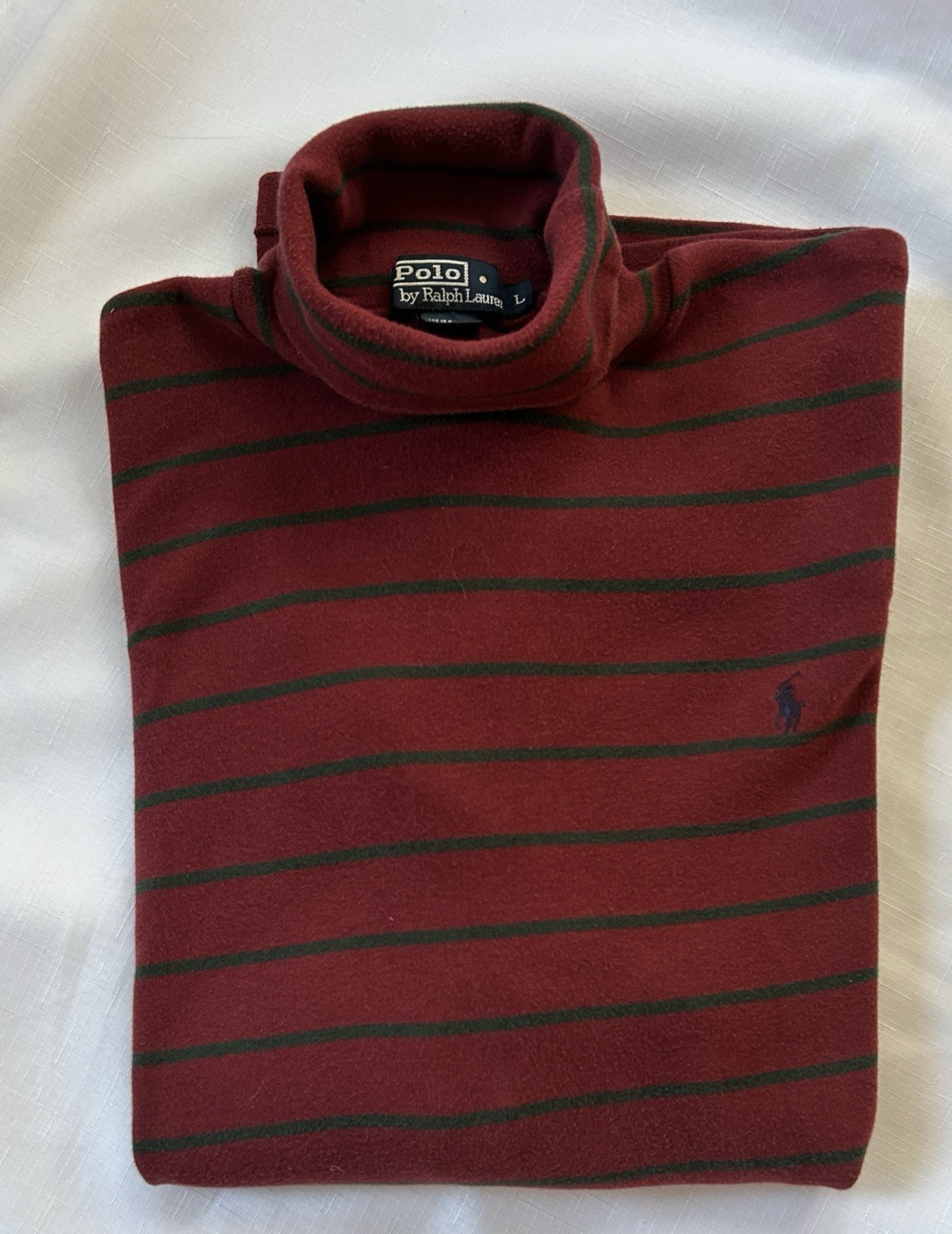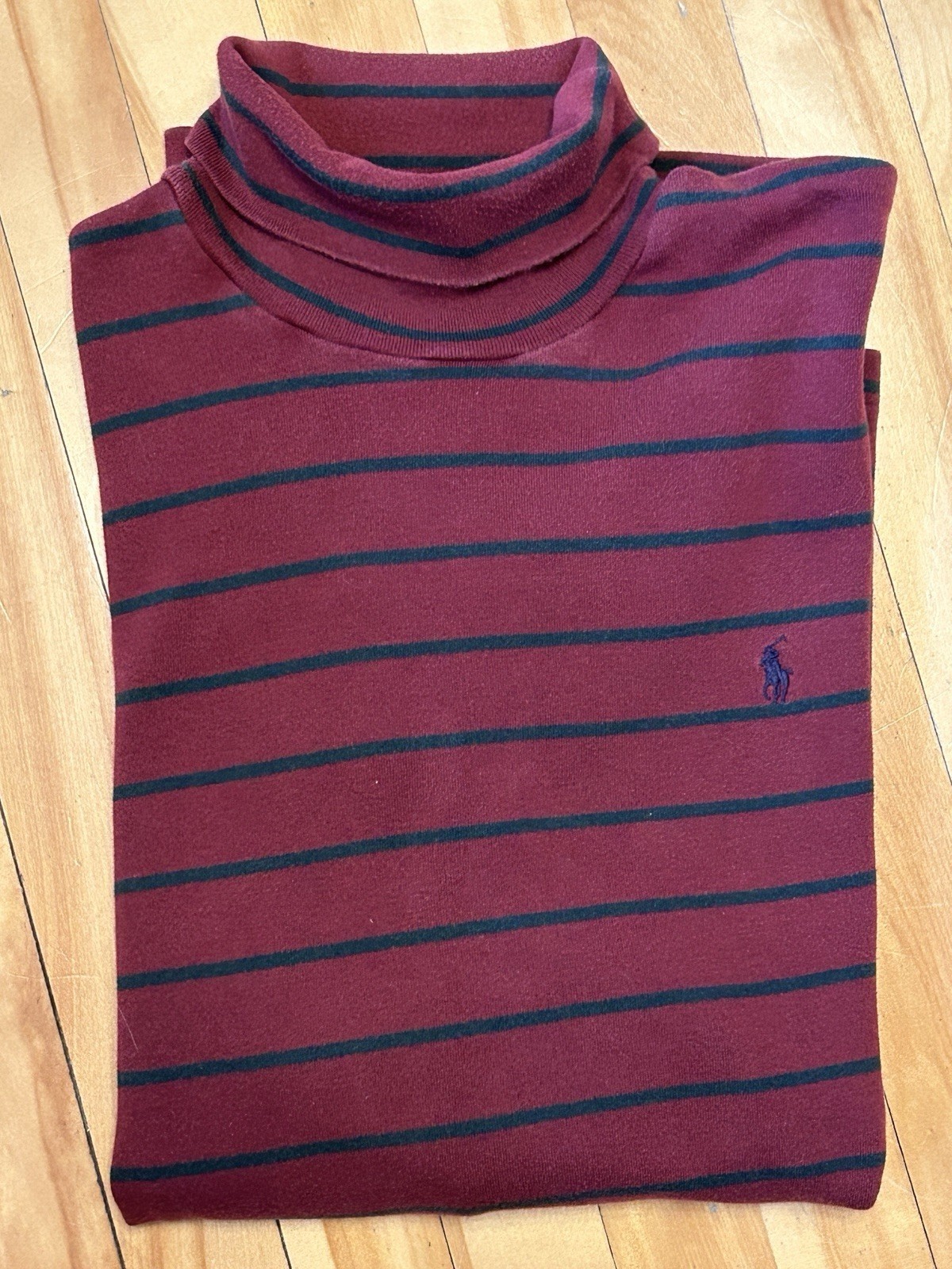 - Polo, Ralph Lauren Long Sleeve Turtleneck Men's Large burgundy Green stripes