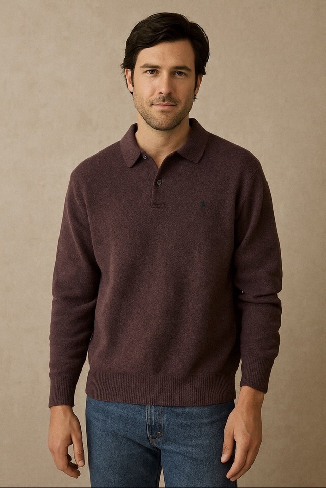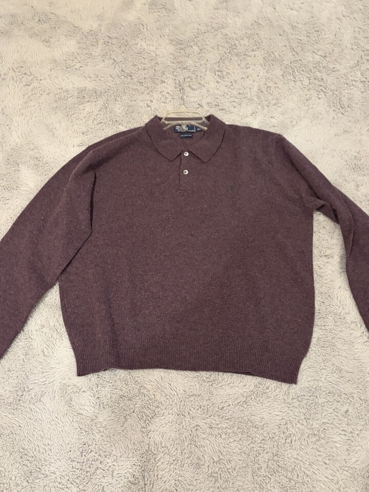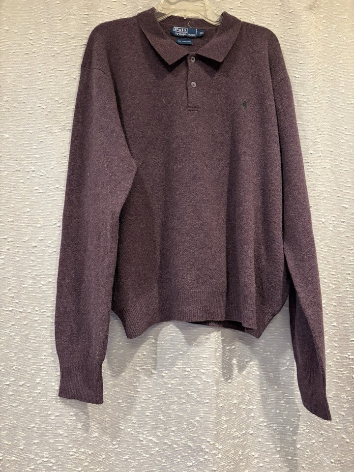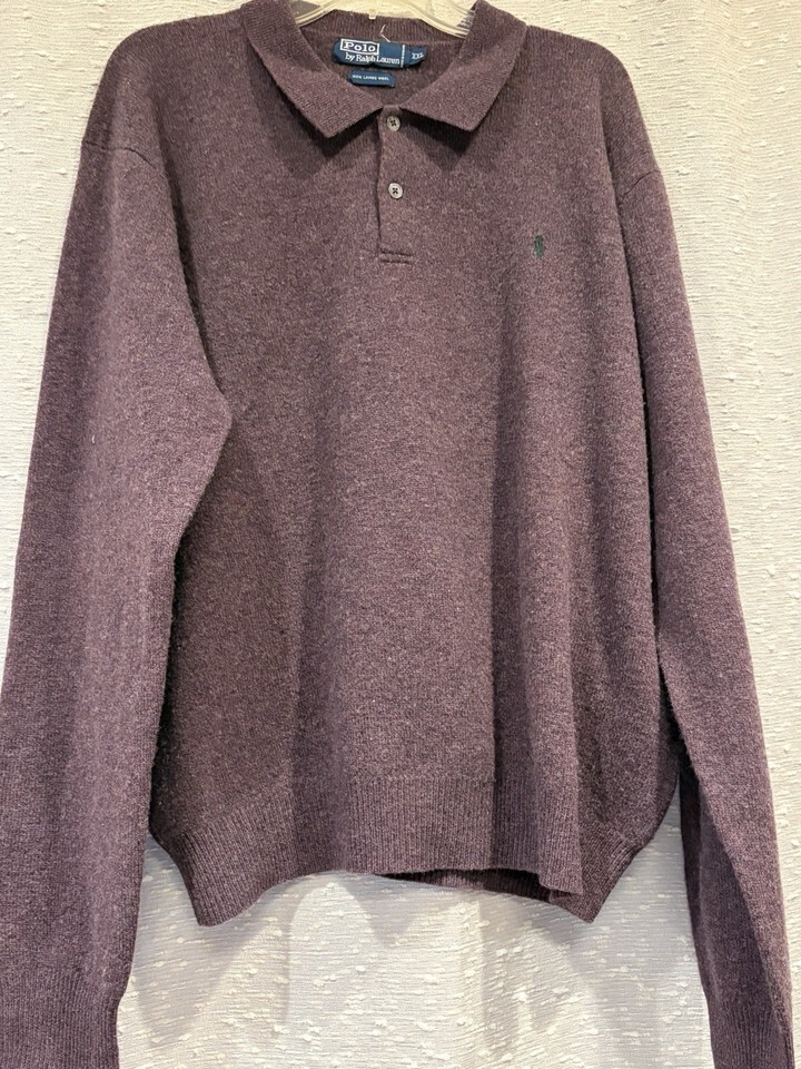- Polo Ralph Lauren Men’s Lamb Wool Collared 2XL Maroon/ Purple Sweater