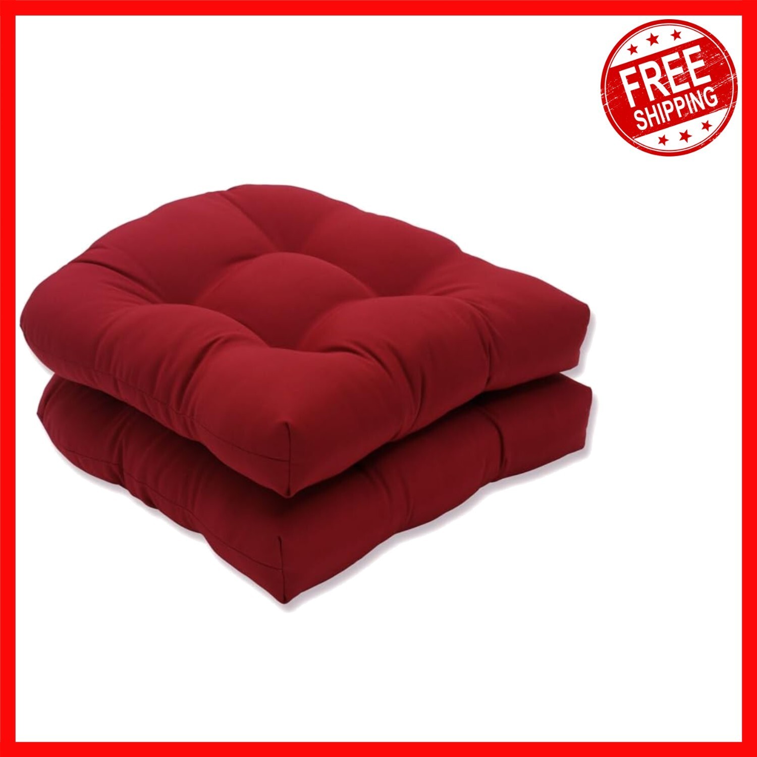 - Pompeii Tufted Seat Cushions, 19" Round, Water-Resistant, 2 Pack – Vibrant Red