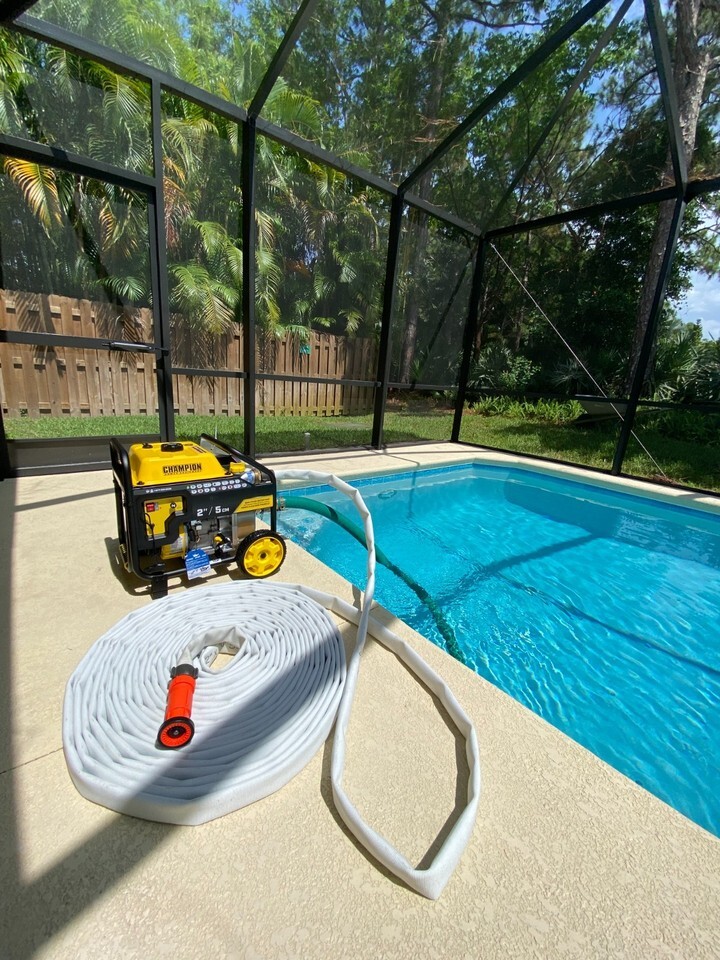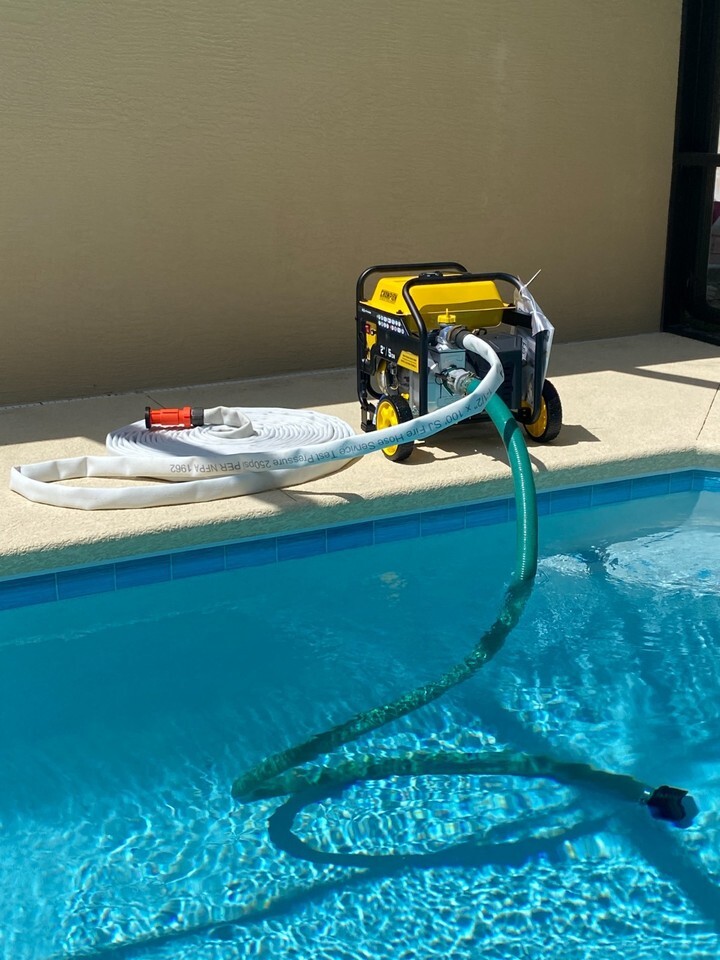Protect your home and valuables with the water stored in your backyard swimming pool. Your pool is like a fire truck always on the scene ready to protect your home from a wildfire. You will no longer be dependent on the fire department arriving in time to save your property in the event of a fire. Due to the spread of wildfires around the country, we are offering a complete portable fire pump/hose system that can be ready in a moments notice and Free Ground UPS Shipping. This system can also be used to apply Barricade Fire Blocking Gel if you purchase separate Barricade Fire Hose Eductor Applicator Nozzle. Call Toll Free7722844233 for any other product specification questions. Check out this link to see our feedback rating from our main account. jjsfiresupply