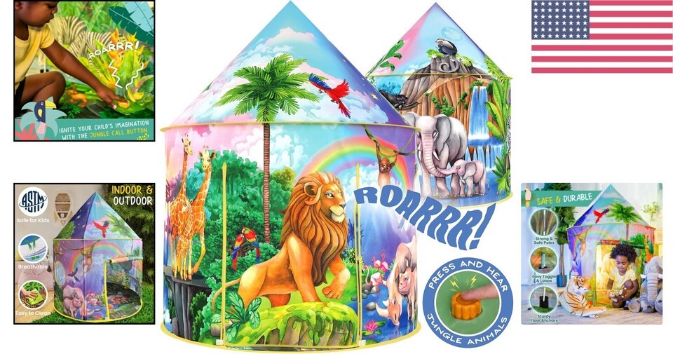- Pop-Up Jungle Adventure Tent for Kids with Lifelike Animal Sounds & Activities