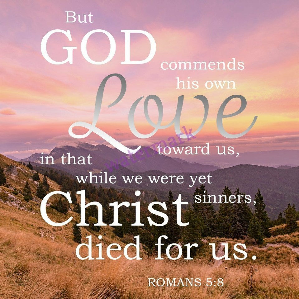 POPULAR BIBLE VERSE SCRIPTURE ROMANS "BUT GOD COMMENDS HIS OWN LOVE..." PHOTO