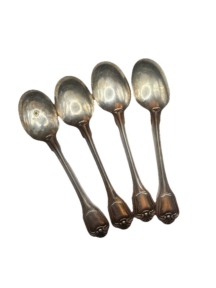 - Port Royal by Christofle Silver Plate Set of 4 Demitasse Spoons 4" France Tea