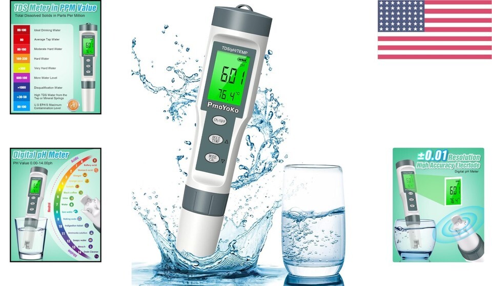 - Portable 3-in-1 pH/TDS Meter - High Accuracy Tester for Aquariums and Pools