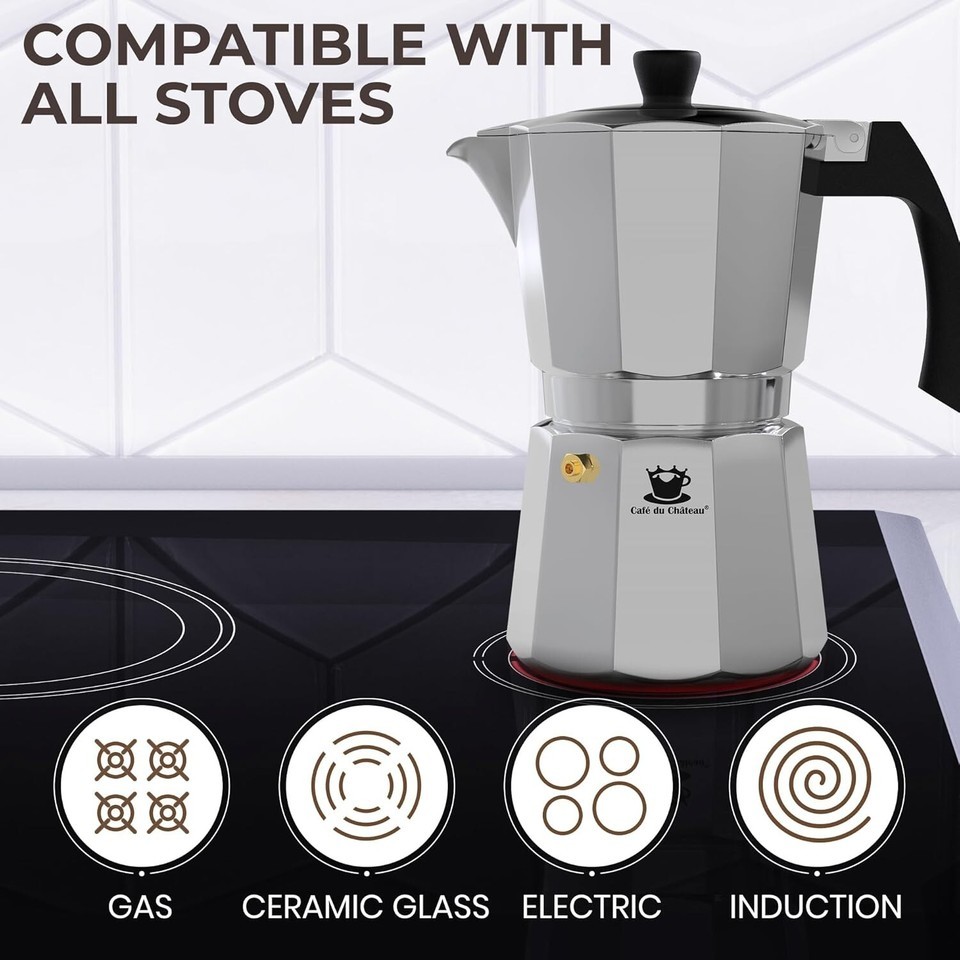 - Portable 6-Cup Espresso Maker with High-Gloss Finish - Perfect for Camping