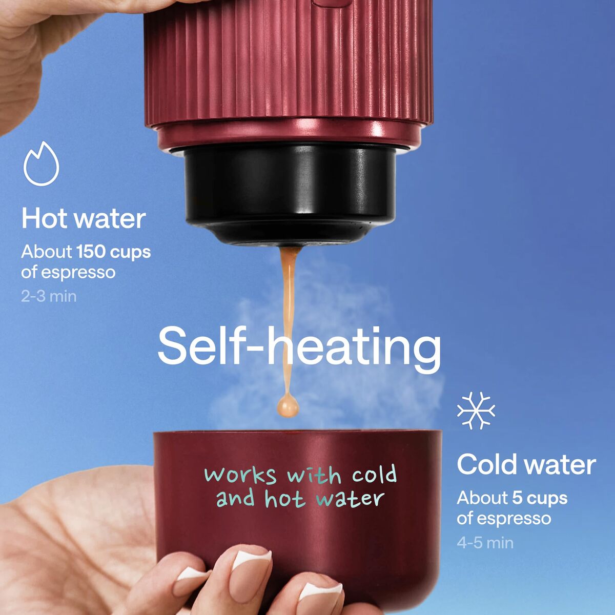 Hot and Cold Coffee Maker: no need to heat the water separately, as our portable coffee maker for travel features a water heating function, allowing to make up to 5 cups of espresso coffee or up to 150 if pre-heated water is used