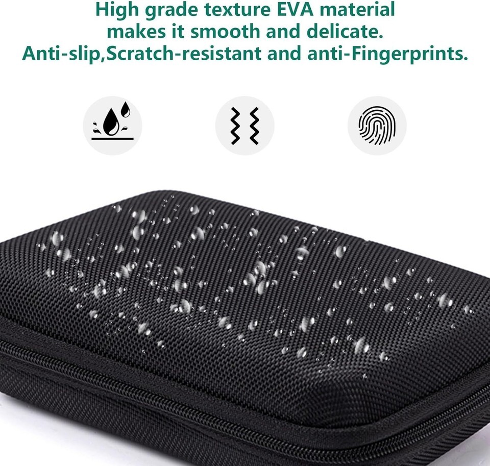 In a digital age where our files and memories deserve the utmost protection, our Portable External Hard Drive Carrying Case is your ultimate safeguard. Crafted from water-resistant hard EVA, this case not only protects your external hard drives from liquids, but its shockproof design also shields your valuable data from bumps and drops. The secure interior strap and zippered closure provide peace of mind as you travel, ensuring everything traces to its rightful place.