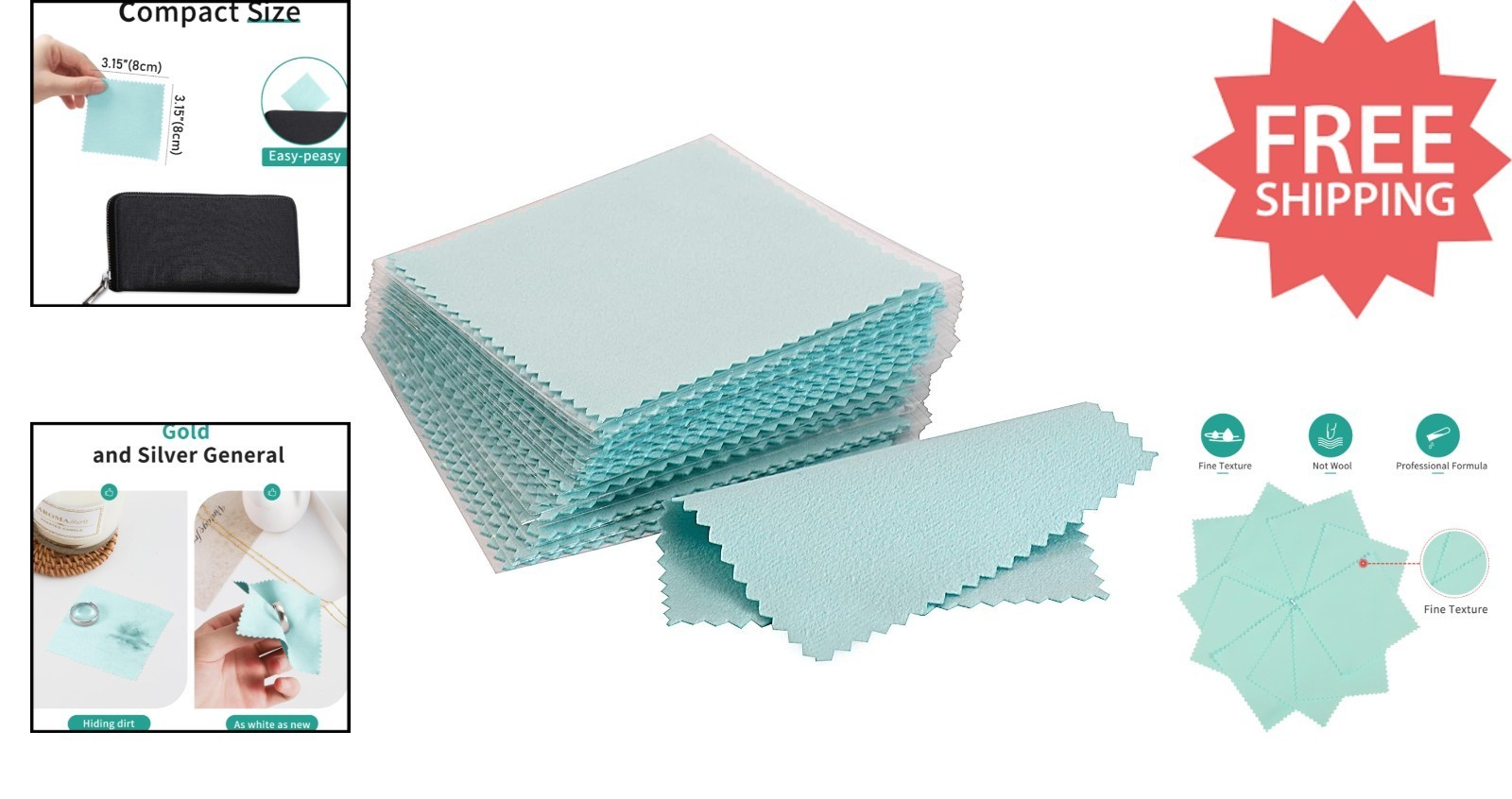Discover the ultimate jewelry cleaning solution with our high-quality microfiber Jewelry Cleaning Cloth. Designed to outperform traditional cotton cloths, it effectively decontaminates and removes rust using a professional-grade formula. Each individually wrapped 8cm x 8cm sheet is perfect for travel and makes an excellent gift for jewelers and enthusiasts alike. The double-sided design easily restores shine by removing scratches and rust from silver, gold, brass, and other metals. Versatile and multi-purpose, it is suitable for jewelry, tableware, musical instruments, glass, watches, and even mobile phones. Included in the pack are 100 sea blue polishing cloths and a jewelry cleaning solution, offering a comprehensive set for all your cleaning needs.