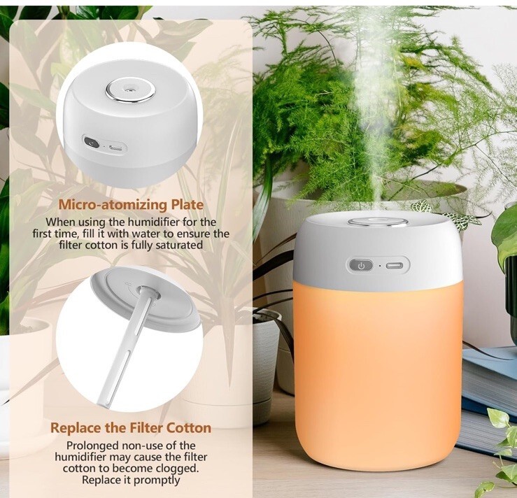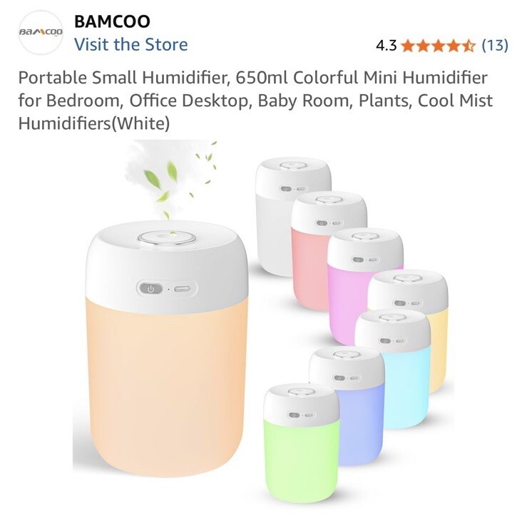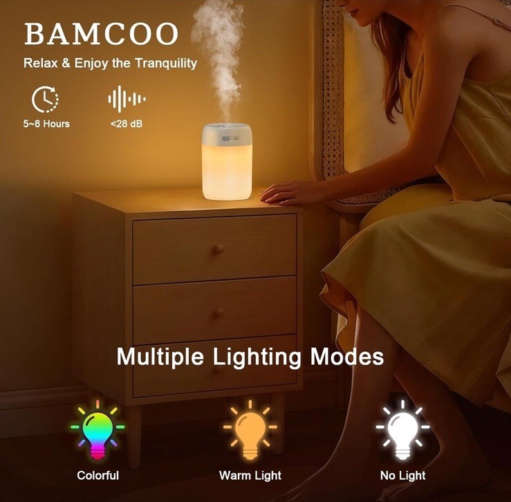 The Bamcoo Portable Small Humidifier is a colorful mini humidifier designed for use in bedrooms and offices. With a compact cylindrical shape and a capacity of 650ml, this humidifier is lightweight at 0.71 pounds and easy to transport. It runs on a rechargeable lithium-ion battery with a weight of 3.0 ounces, making it convenient for use anywhere. This portable humidifier is ideal for small spaces and can help improve indoor air quality by adding moisture to the environment.