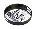 A beautiful display for your smaller items, the Positano a??Dream Biga? Round Mirror Tray features a gorgeous antique wash background and black cursive text that will add inspiration to your d cor. Large round tray with side handles. Black cursive writing.