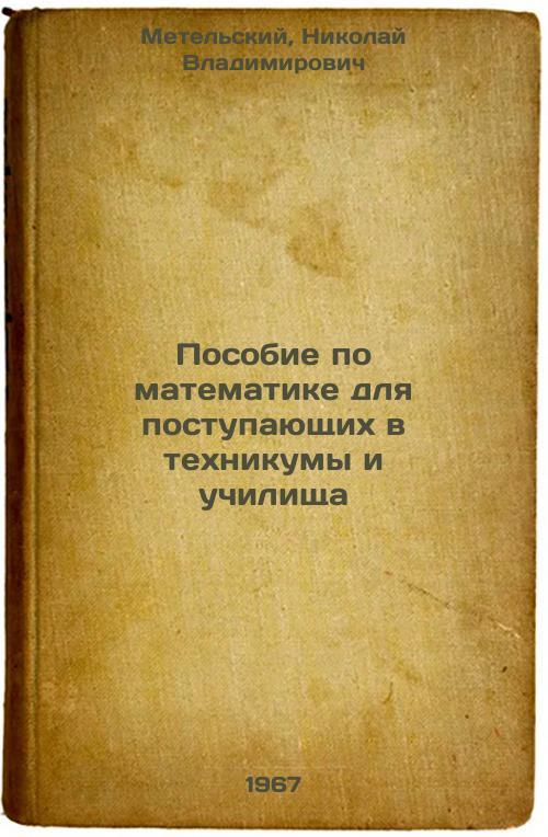 Short description: In Russian. Metelsky, Nikolai Vladimirovich. Mathematics Manual for Entry into Technical Schools and Schools. Minsk: High School, 1967. Posobie po matematike dlya postupayushchikh v tekhnikumy i uchilishcha. In Russian /Mathematics Manual for Entry into Technical Schools and Schools. The image is provided for reference only. It may reflect condition of one of the available copies or only help in identifying the edition. Please feel free to contact us for a detailed description of the copies available. SKU6341575