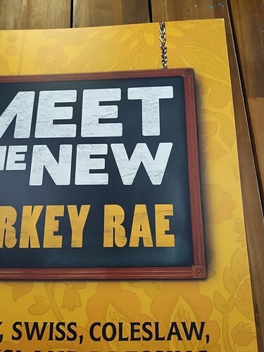 - Potbelly Sandwich Works 2000s New Turkey Rae Promotional Sign 22" X 37"